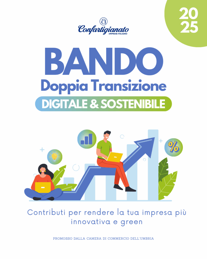 La Camera di Commercio dell’Umbria ha pubblicato il nuovo bando “Doppia Transizione: Digitale e Sostenibile” 2025, rivolto alle micro, piccole e medie imprese del territorio.