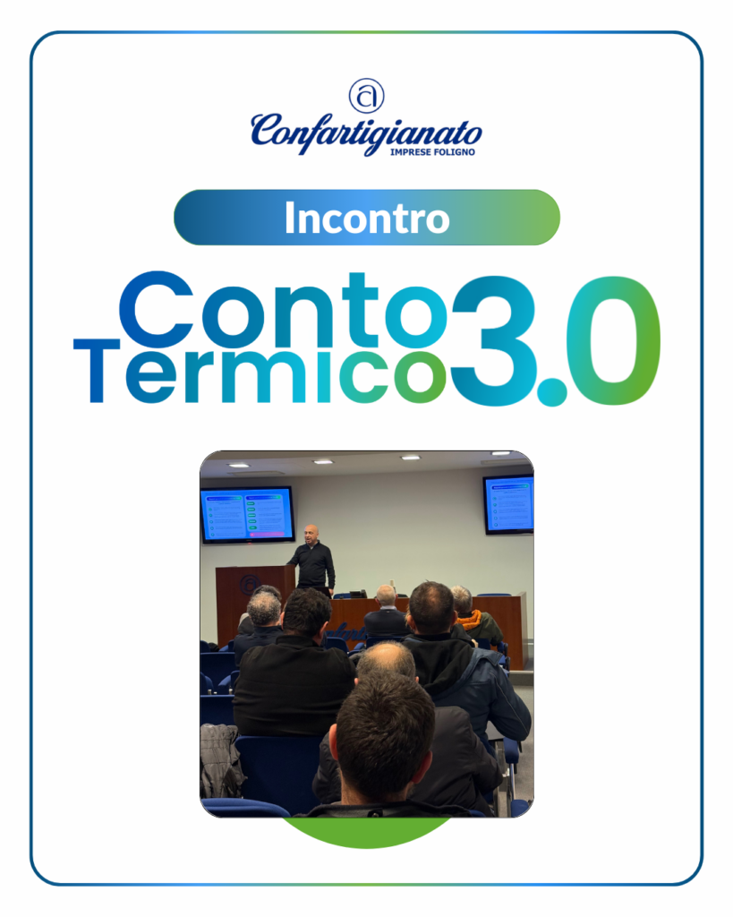 Si è svolto mercoledì 11 febbraio, dalle ore 17:00, l’incontro organizzato da Confartigianato Imprese Foligno e moderato dall’Ing. Luca Bolletta, dedicato al Conto Termico 3.0.